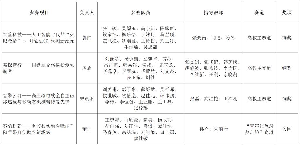 近日,教育部公布了中国国际大学生创新大赛(2025)获奖名单(教高函〔2026〕1号),我校4项参赛项目入围全国总决赛,最终获得国家级铜奖3项,实现高教主赛道获奖数量新突破。